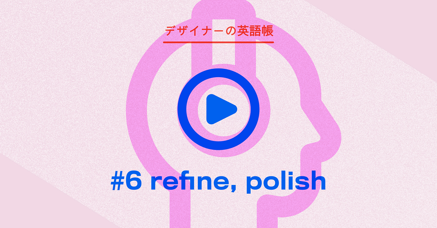 サンフランシスコ在住の大石結花さんと、デザイナーが使う英単語を例文を交えてデザインの現場でどのように使っているかを紹介するコーナーです。日本語で「デザインをブラッシュアップする」を英語でそのまま brush up と言っても通じないかもしれません。今回は、これに相当する refine(改良する)と polish(磨く、洗練する)という2つの単語を取り上げます。