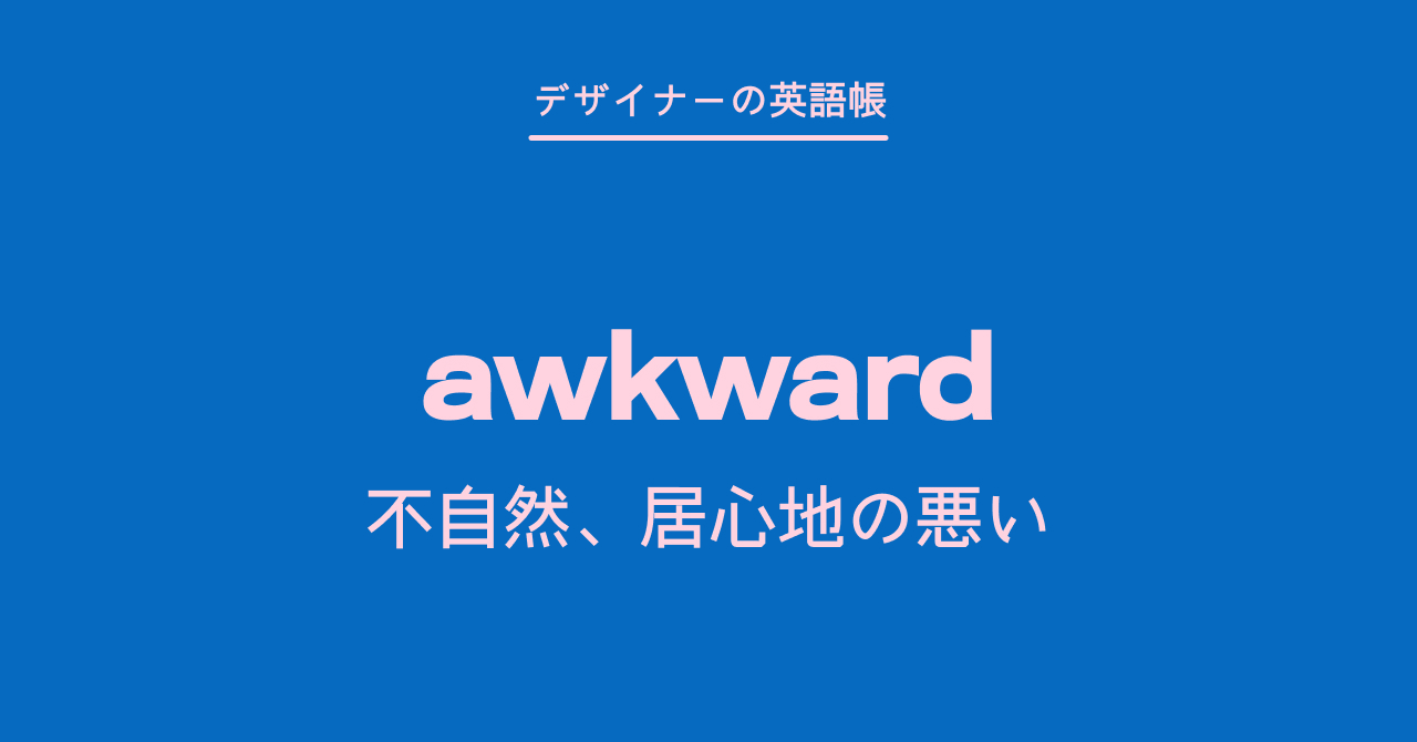 デザイナー同士の会話では、レイアウトやインタフェースの操作性について「なんとなく変だな」と感じるときに awkward がよく使われます。具体的にどこが問題かを指摘するより前に、直感した違和感を表すのに便利な言葉です。