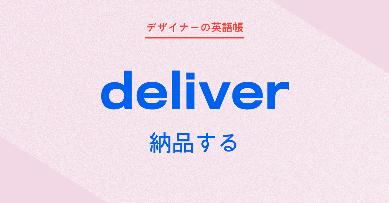宅配のことをデリバリーと言うように、deliver には「配達する」「届ける」という意味があります。物理的な配達だけを意味するものではないので、deliver の後に商品やデザインの成果物を置くことで「納品する」という表現に使うこともできます。
