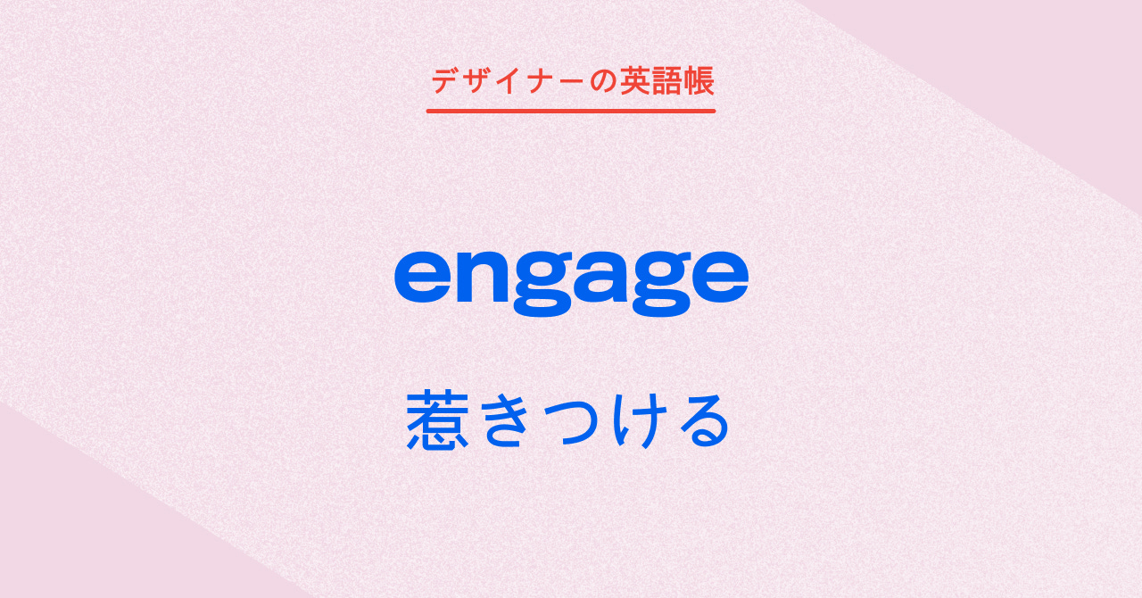「婚約する」「誓約する」「関わらせる」という意味もある engage は、約束をして深く結び合うイメージを持つ言葉です。この約束をする相手がユーザーになると、ブランドやプロダクトに愛着を持って使ってもらう、つまり「惹きつける」という意味で使えます。