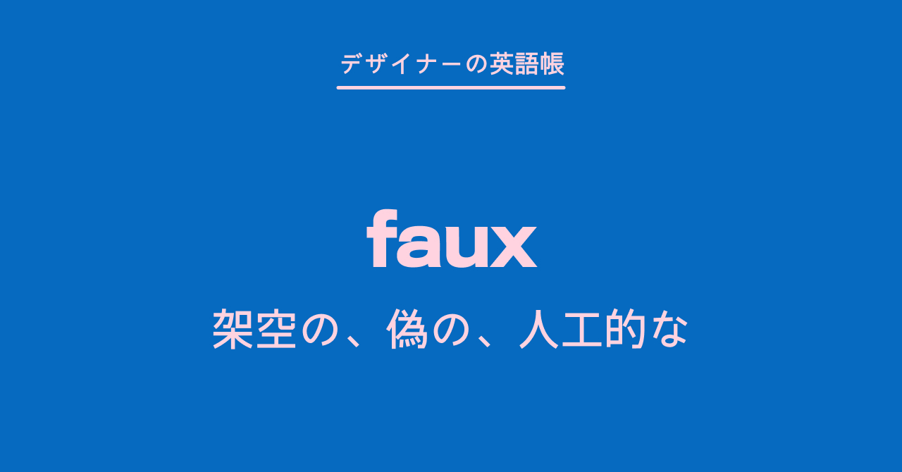 直感的に faux を思いつくのが少し難しく fake で代用していたのですが、仕事の中でプロダクトの使用例のために登場する、架空の会社の架空のブランディングをつくる際に、同僚が “faux branding” と繰り返していたのをきっかけに自分も自然に使えるようになりました。