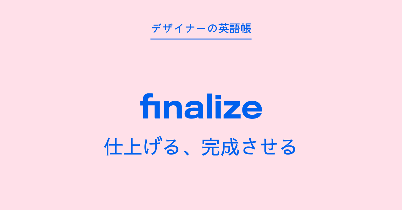 finalize は、何かを最終的な状態にする、つまり「仕上げる」という意味になります。納品やリリース前のタイミングで、チーム内の会話としてよく出てきます。