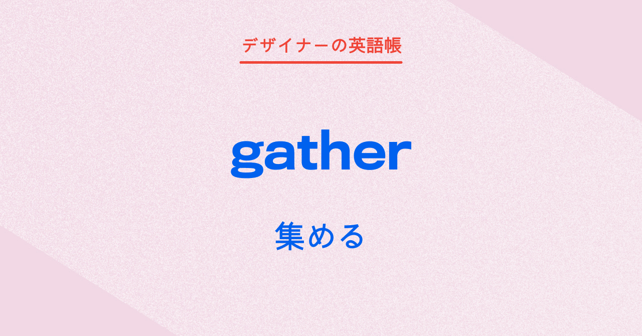 gather は、散らばっているものを「一箇所に集める」ことです。ユーザーからのフィードバックを集めるときによく使われます。また、集会などで人が一同に集まることを gethering といいます。