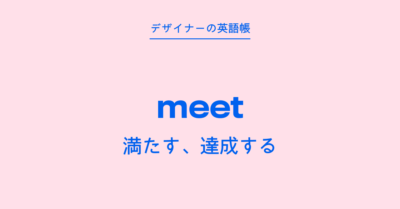 私たちにとって「会う」で馴染みのある meet ですが、要件を満たす、満足感を得るといった「満たす」という意味もあります。