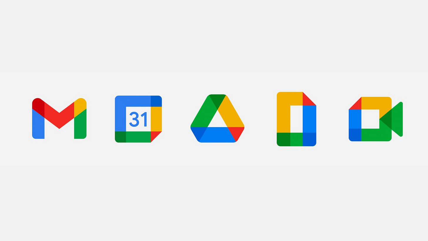 各プロダクトのロゴは、Google のブランドカラーである4色とその重なりを示す色のみを使う形に統一され、アイコンもフラット化されました。これにより一貫したブランド感が演出されています。名前と見た目が変わるだけでなく、各プロダクト間を行き来できるように UX 面でも改善が行われました。