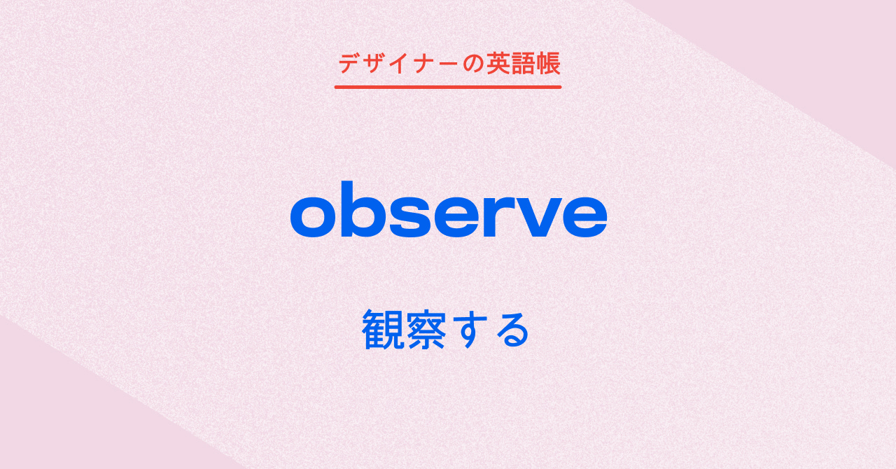 デザインの現場では、課題を発見するためにユーザーの行動を観察する際によく使われます。アプリやウェブサイトを使う様子を観察することで使いやすさを検証する usability test では様々な観点での observe がおこなわれます。