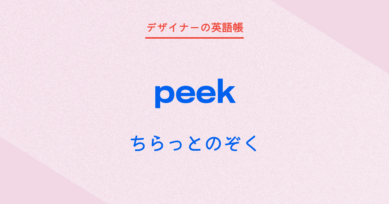 物や人が、影から「ちらっとのぞく」ことを peek といいますが、インタラクションデザインにおいて、要素の見え隠れを表現するときにも使うことができます。