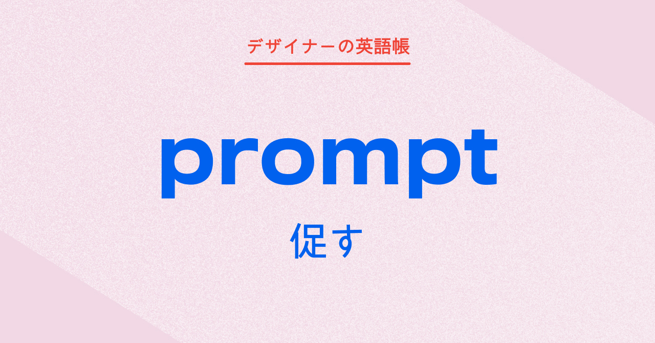 ユーザーに何か操作を「促す」「刺激する」ときに使える言葉が prompt です。早く物事をするように急かしたり、催促することを表し、形容詞として使うと「迅速な」という意味になります。デザインの文脈では、ダイアログを表示したりなど、要求するアクションが明確に見える形になっているときに使われています。