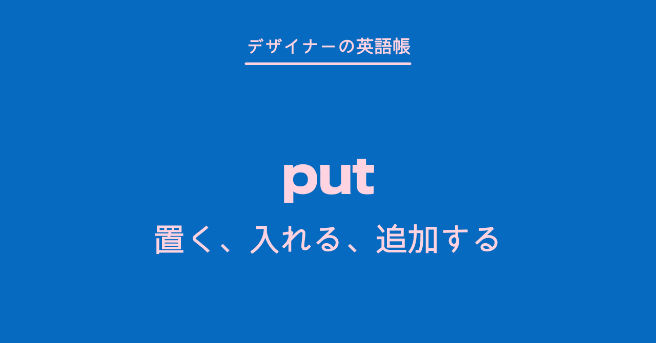 put は「置く」「追加する」という意味を持ちます。学校の英語の授業でも早いうちに習うほどに基本的な言葉です。
