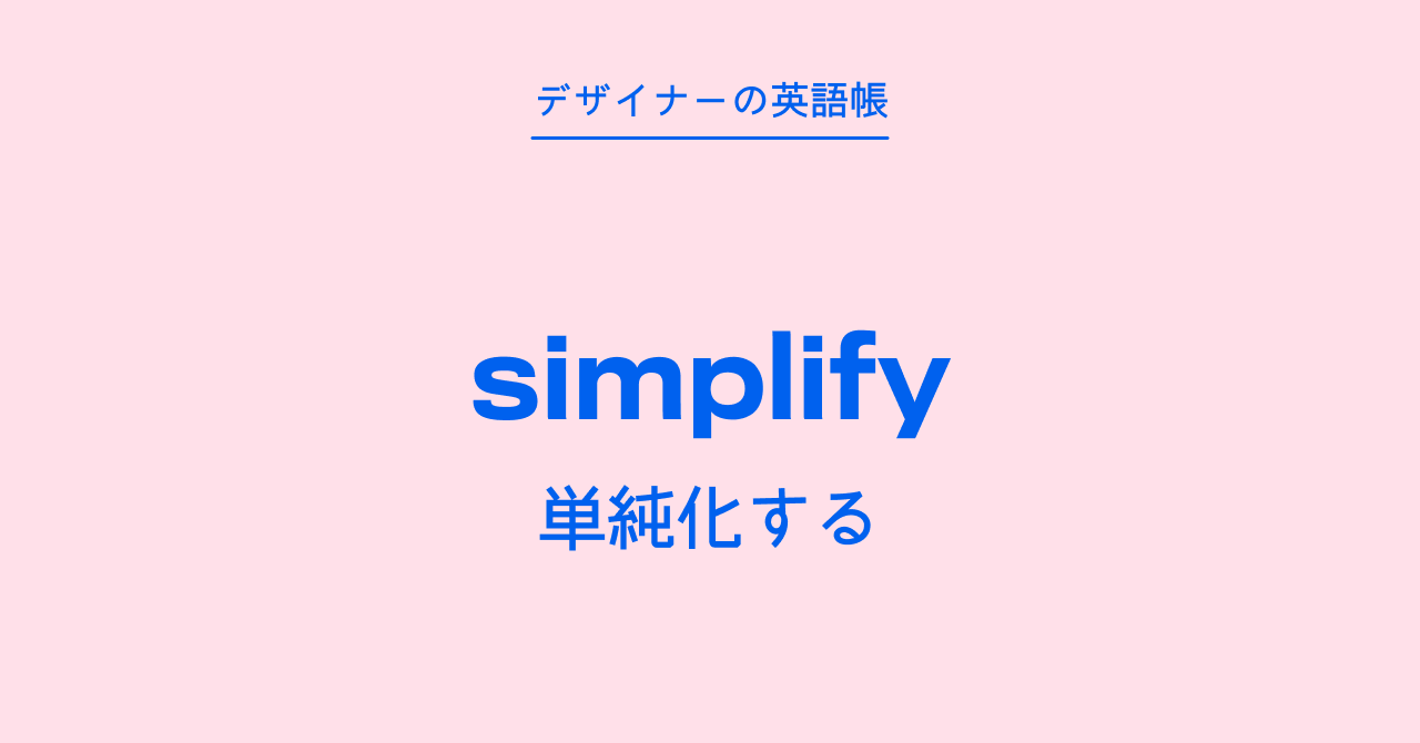 日本語でも「シンプル」として、そのまま使われる形容詞の simple を動詞にした形で、何かを「単純化する」ことや、「簡単にする」ことを意味します。