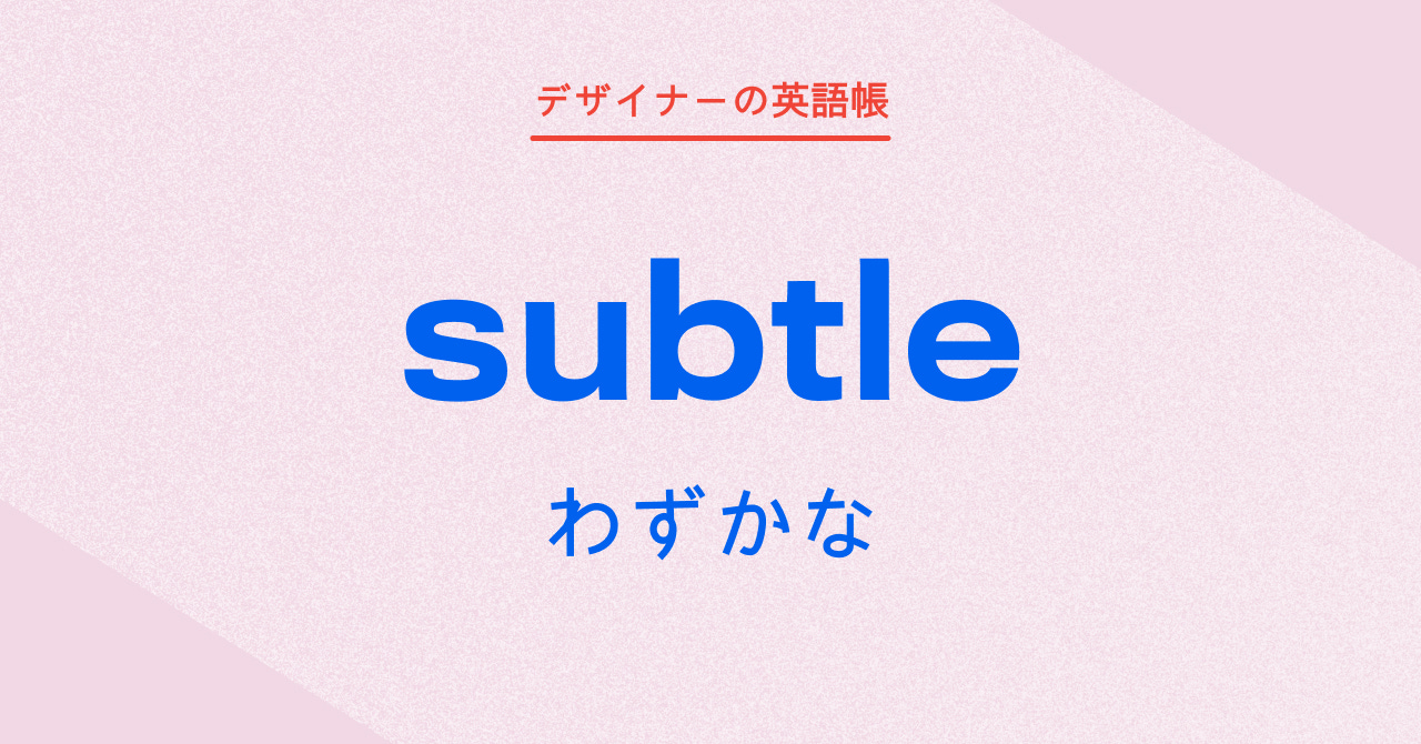 「微妙な」「わずかな」「目立たない」といった表現をデザインを作り込んでいる場面で言いたくなるかもしれません。そういうときに subtle が使えます。目立たないけれど意味のあるものの形容に使われ、「巧妙な」「敏感な」と訳されることもあります。細部まで目の行き届いたものを作る、デザインの仕事の基本にも通じるような言葉です。