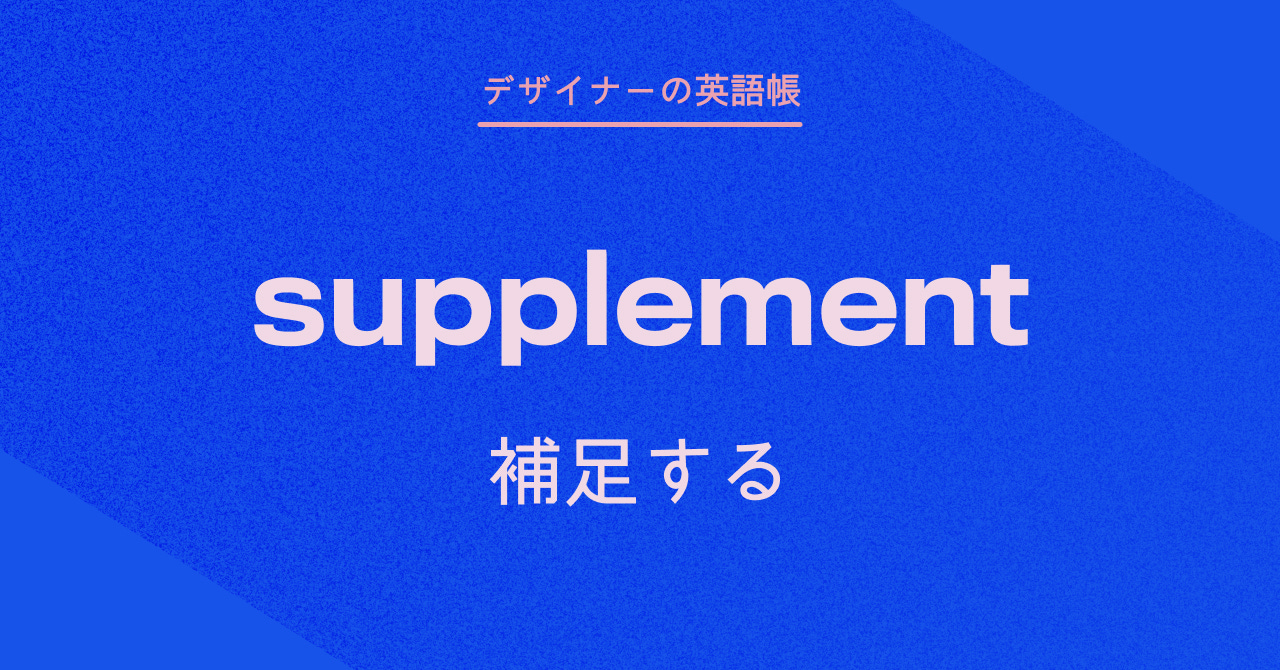 モバイルアプリのデザインについて話していたときに、同僚が「アニメーションに合わせて音を追加しよう」という提案をしたのですが、その時に使っていた動詞は supplement でした。「補足する」「補う」を意味し、「音を加える」というよりは「音を入れることで演出を補う」という意図であったと理解できます。